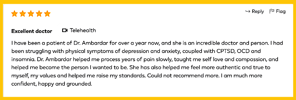 Dr. Ambardar is a Stanford-educated, Top Doctor as honored by her peers and a Compassionate Doctor Winner 5 years in a row. As someone who has experienced depression and family abuse herself, she knows firsthand how difficult it can be to reclaim our happiness and true inner self.